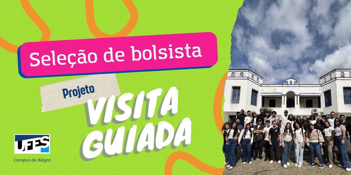 A Universidade Federal do Espírito Santo (UFES), por meio do Programa Institucional de Bolsa de Extensão (PIBEX 2025), torna pública a abertura do processo seletivo para bolsista do Projeto de Visita Guiada do Campus de Alegre. A iniciativa tem como objetivo apoiar ações de extensão voltadas ao acolhimento, acompanhamento e orientação de visitantes, fortalecendo a relação entre a universidade e a comunidade.