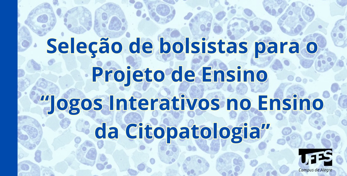 O Departamento de Farmácia e Nutrição do Centro de Ciências Exatas Naturais e da Saúde, no uso de suas atribuições, considerando o disposto no Edital Prograd nº 23/2025 – Projeto de Ensino, torna público o Edital nº 01/2026 de seleção de bolsistas para o Projeto de Ensino “Jogos Interativos no Ensino da Citopatologia” sob a coordenação da Professora Klesia Pirola Madeira da Universidade Federal do Espírito Santo, Campus Alegre.